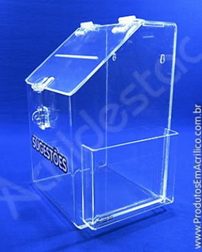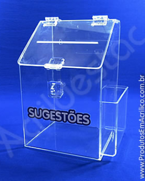 Caixa de Sugestões em Acrilico Cristal 20cm Sugestões e Reclamações