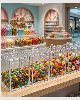 de ração a granel, caixa expositora para balas, pote de acrílico para mesa de