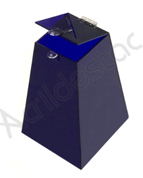 | ST110 - 30cm Acrilico Azul-Bic - Urna Piramide (3mm), dobradiça(s), trinco p/ cadeado, pezinhos - ADESIVO(S) Envelopada nas 4 Faces |