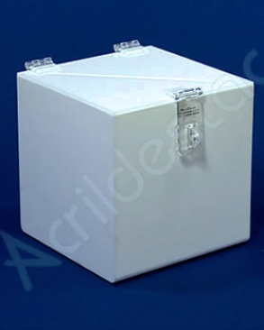 | Cod.1144 - 20x20cm PS Branca - Urna Quadrada, dobradiça(s), trinco p/ cadeado, pezinho de silicone - ADESIVO(S) Envelopada nas 4 Faces |