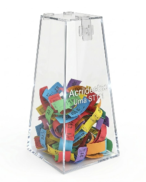 Urna em Acrilico Acrildestac é sem dúvida um produto confiável! Oferece segurança aos cupons e fichas